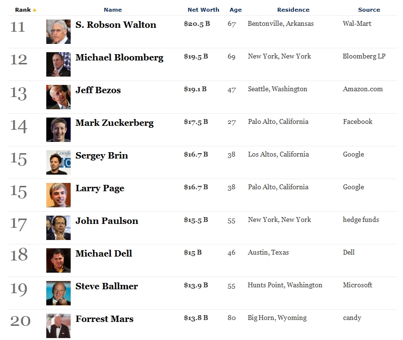 フォーチュン誌が長者番付を発表!!フェイスブック創業者がグーグル創業者を抜く!!