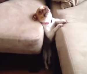 家の中で遊んでいるうちにこうなってしまったのか、クッションとソファの間で身動きが取れなくなっている子犬をとらえた映像をご紹介します。必死な子犬の顔をご覧ください。